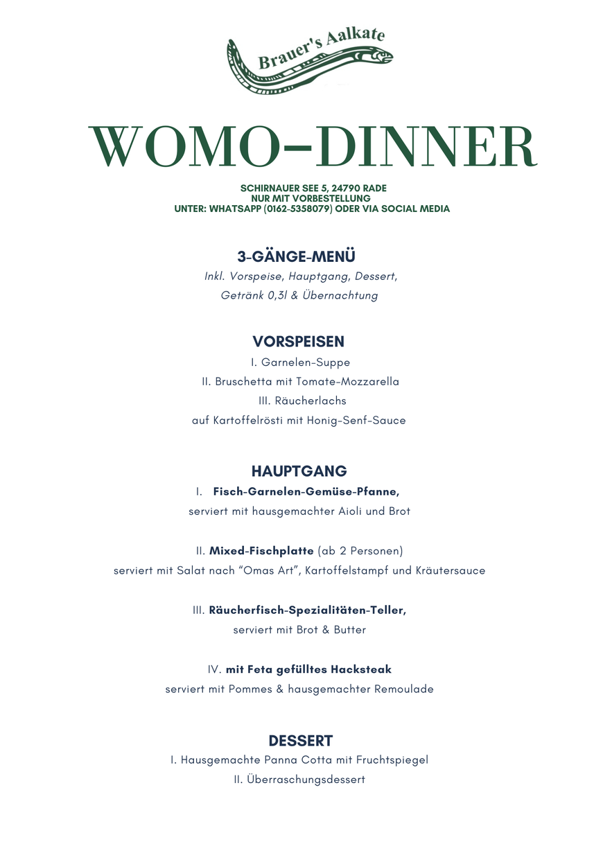 Aktuell bieten wir das Wohnmobil-Dinner an besonderen Tagen an. Unser Fisch stammt aus der eigenen Fischerei, weshalb sich das Angebot je nach Saison und auch Fang unterscheiden kann.